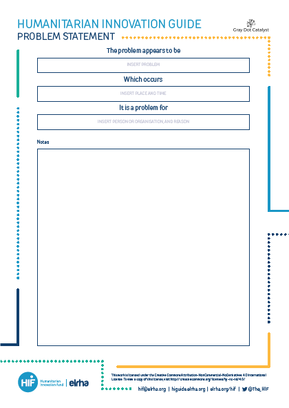 Your problem statement should identify what the problem is, where and when the problem occurs, and who experiences this problem (known as the ‘problem holder’). A problem statement should look something like this: