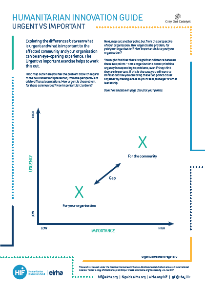Then take a dot sticker (two per person) and vote for the most convincing answer from the point of view of your organisation and from the point of view of the affected population.